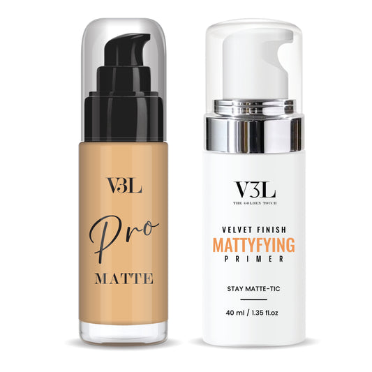 Matte Make-up Combo- Velvet finish Mattifying Primer & Pro Matte Foundation (30 ml) 7 shades for Indian skin