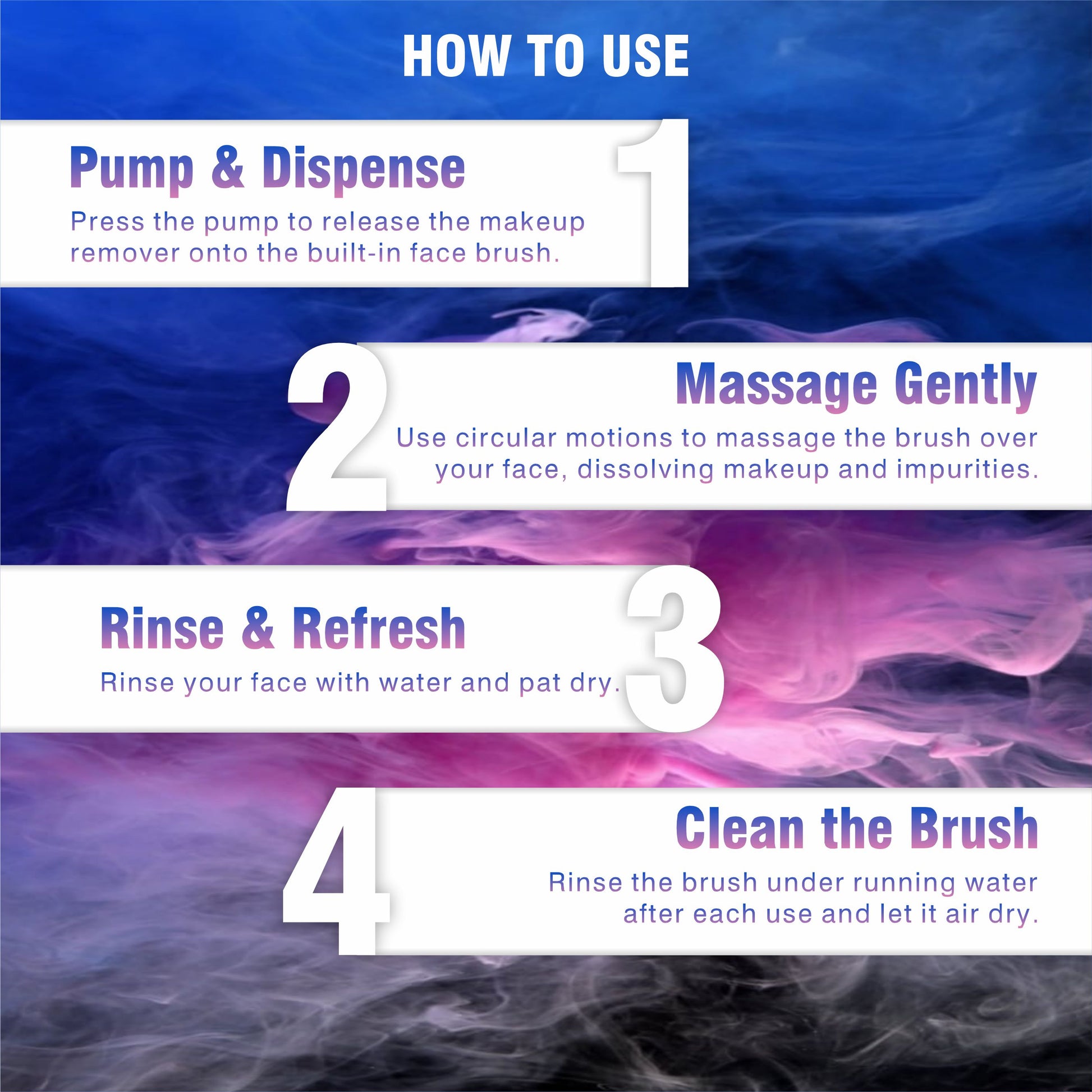 Step 1: Push the built-in brush to dispense the required makeup remover.