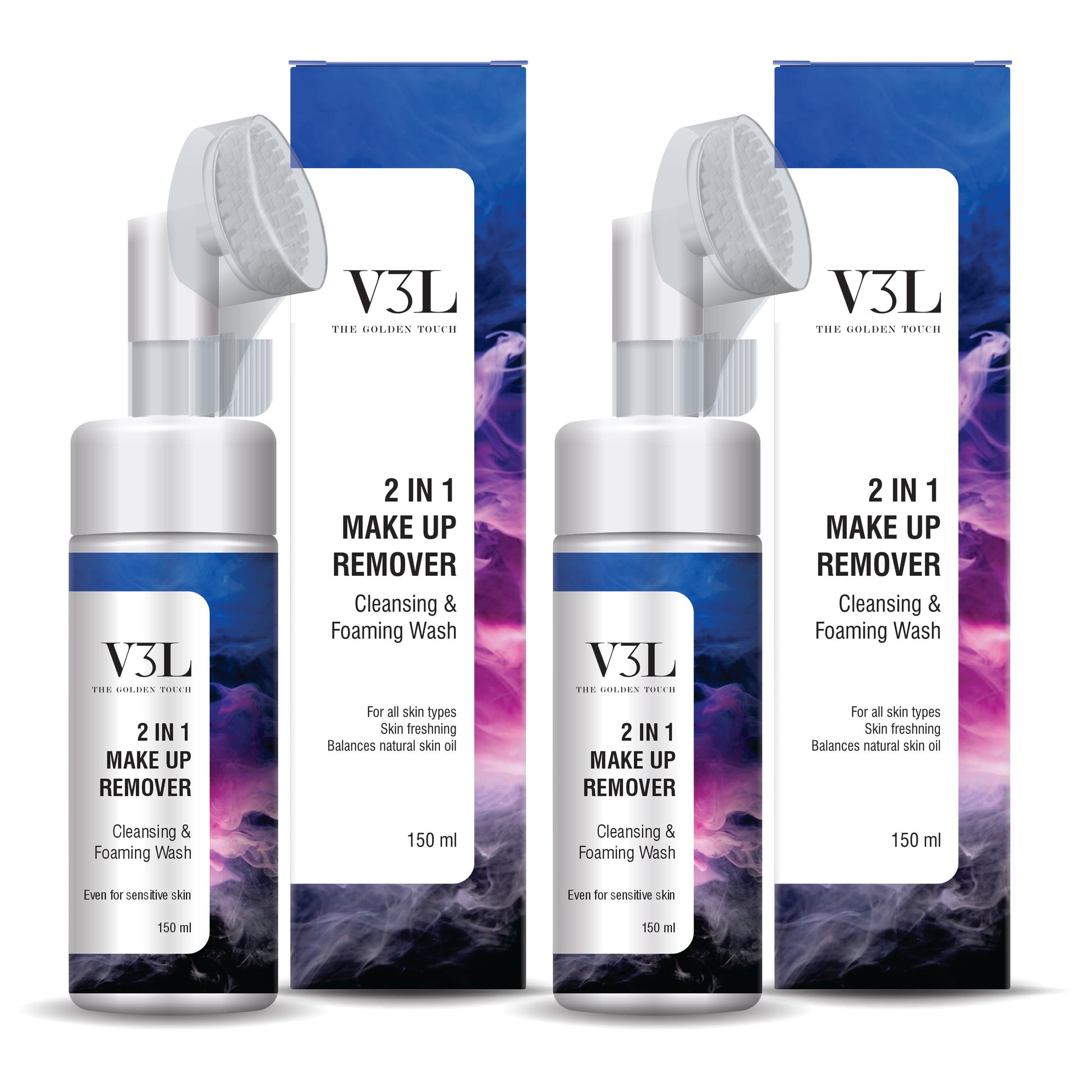 V3L 2-in-1 Makeup Remover is a gentle yet effective cleansing and foaming wash designed for all skin types. Infused with skin-refreshing ingredients, it effortlessly removes all traces of makeup while maintaining the skin’s natural oil balance. It's built-in face brush enhances deep cleansing, leaving the skin feeling soft, fresh, and hydrated. It is free from parabens, silicones, and sulfates and ensures a safe and nourishing cleansing experience.