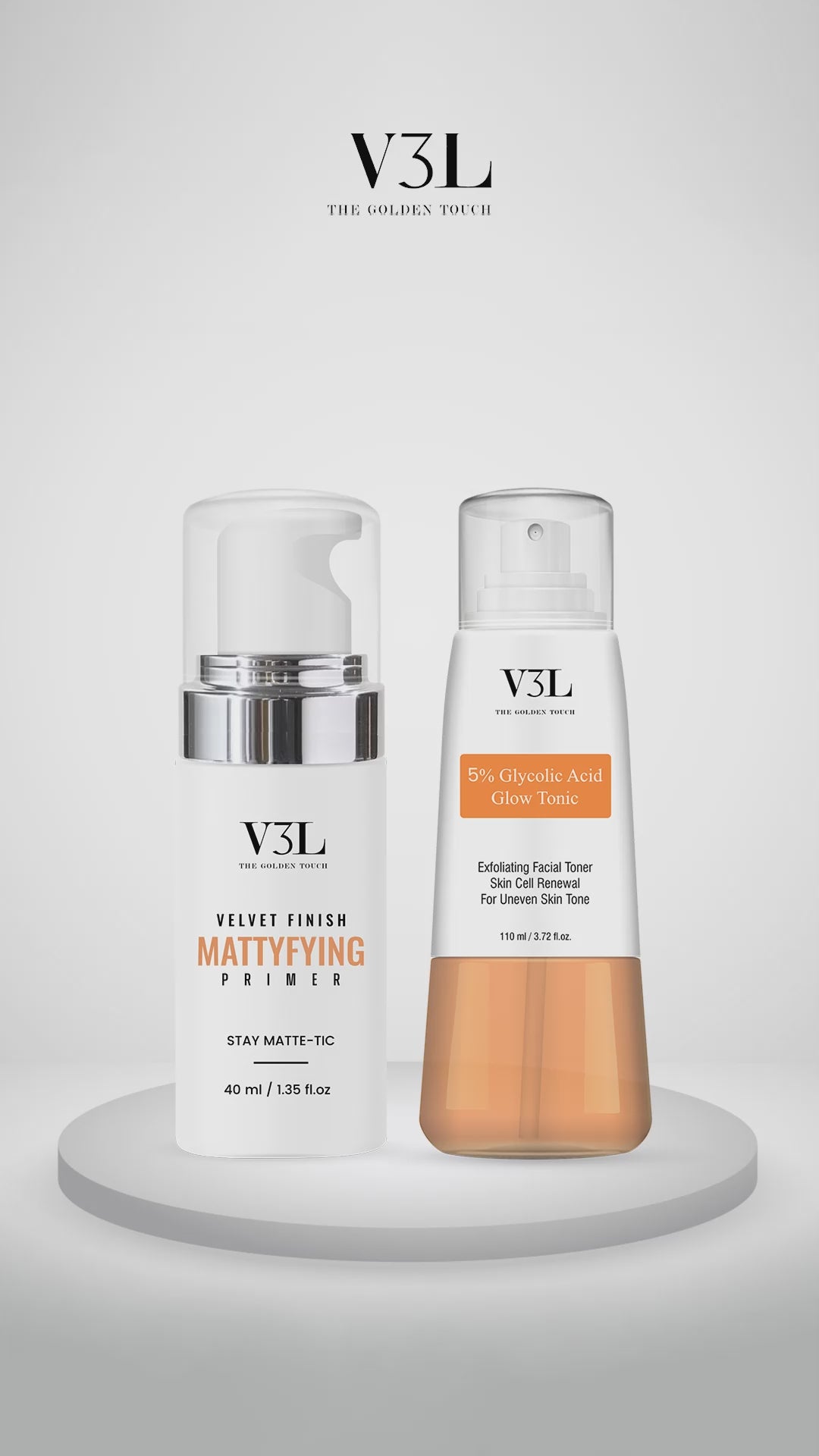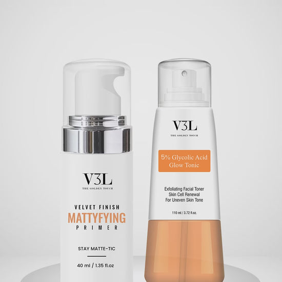 Achieve Radiant Skin with a Matte Finish – All in One Combo! The perfect skincare and makeup-prep duo from V3L – the 5% Glycolic Acid Glow Tonic (110ml) paired with the Velvet Finish Mattyfying Primer (40ml). This power-packed combo works together to exfoliate, refresh, and prep your skin for a flawless, matte makeup look.